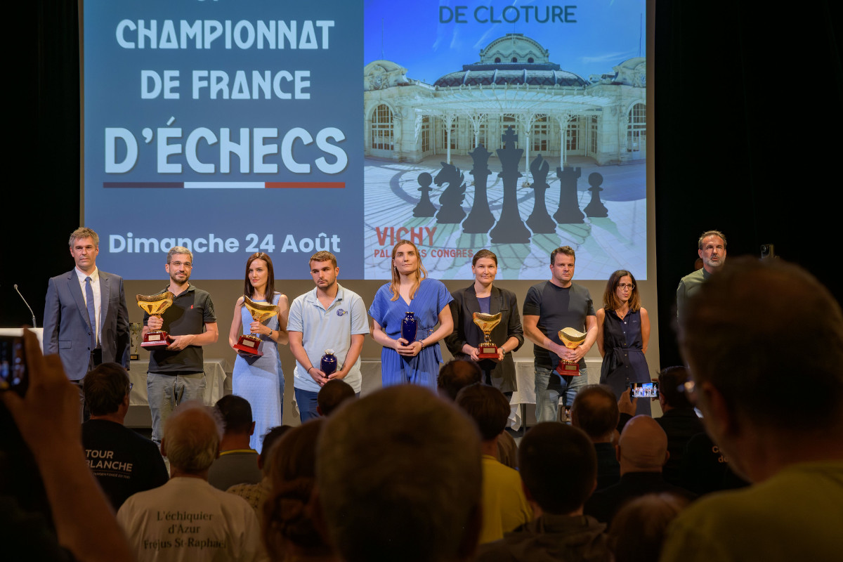 28/08/2025 – Los Campeonatos Franceses de Ajedrez concluyeron el pasado domingo en Vichy. Marc'Andria Maurizzi y Yosha Iglesias fueron coronados como los nuevos campeones nacionales. Maurizzi derrotó a Laurent Fressinet en los desempates de partidas rápidas, mientras que Etienne Bacrot se quedó con el tercer puesto tras superar a Sebastien Maze. En la final femenina, Iglesias superó a Mitra Hejazipour, mientras que Anastasia Savina obtuvo el bronce tras obtener una victoria en los desempates contra Deimante Daulyte-Cornette. El evento cerró un festival multitudinario de diez días que reunió a jugadores de todos los niveles. | Foto: Nathalie Daubry / Federación Francesa de Ajedrez