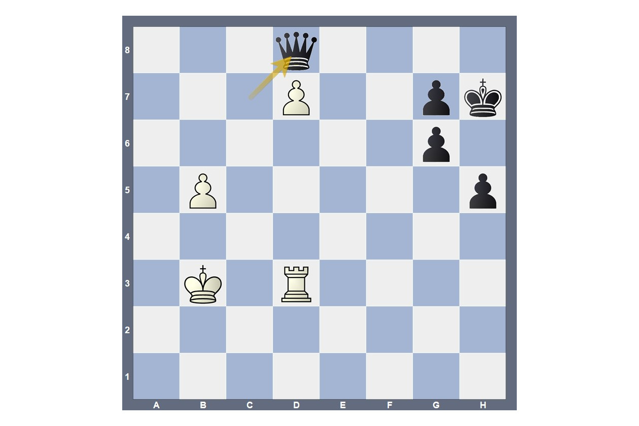 17/02/2026 – Es muy común que los finales de torres terminen en tablas. Pero cuando se presenta una carrera de peones, el escenario es diferente. En esta posición, las negras cuentan con una jugada milagrosa, basada en el hecho de que el final con dama y peón-g contra dama puede terminar en tablas. Juegan las negras y hacen tablas.