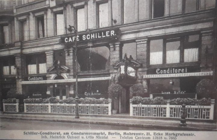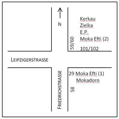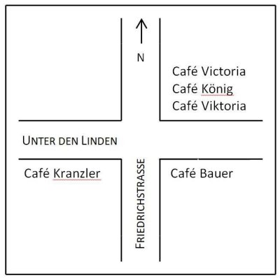 A glance at a reference book of the time ─ Ranneforths Schach-Kalender 1925, for example ─ shows that a number of Berlin clubs met in cafés and restaurants throughout the city. However, there was an area which was of particular significance, namely the section of Friedrichstrasse between Unter den Linden to Leipzigerstrasse, and several cross streets.