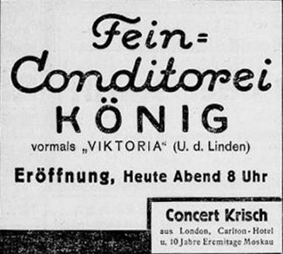 seems to be that Josef König was planning to take over the space, but the Café Zielka’s creditors did not want a name change. Mr König then looked elsewhere.9
