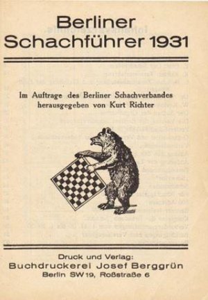 The club championship of the Schachverein 1876 began on 22 October 1931 and continued into 1932. It was won by Kurt Richter with 13½, ahead of Charmatz & Landmann 11½, Vitense 11, Kuhlmann & A. Wagner 10½, Koslowski & Mischke 7, Brennert, Mai, Peiser & Seiffert 6½ (16 players).38