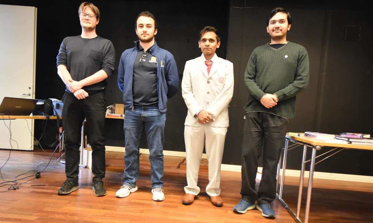 Los cuatro mejores clasificados del torneo para grandes maestros: Frode Urkedal (tercero), Aram Hakobyan (cuarto), Krishnan Sasikiran (campeón) y Aryan Chopra (subcampeón) | Foto: Tom Eriksen