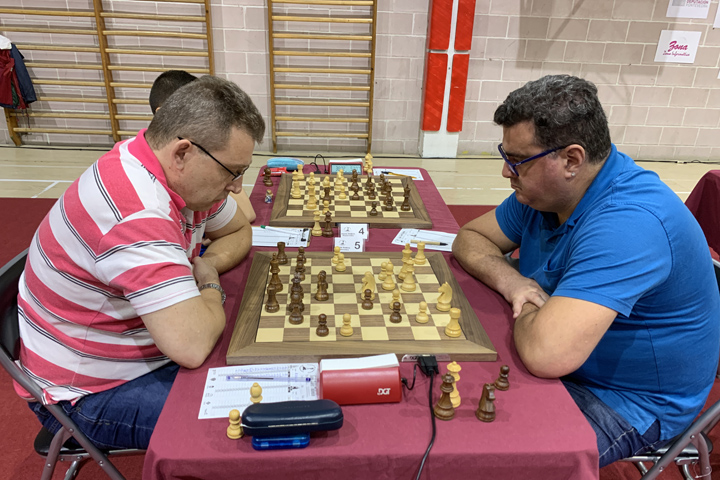 GM Andrés Rodríguez (dcha.) | Foto: via David Fernández Lago Escola Xadrez Pontevedra