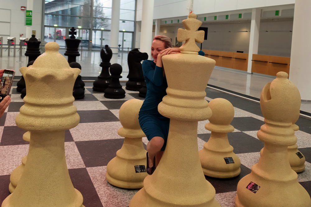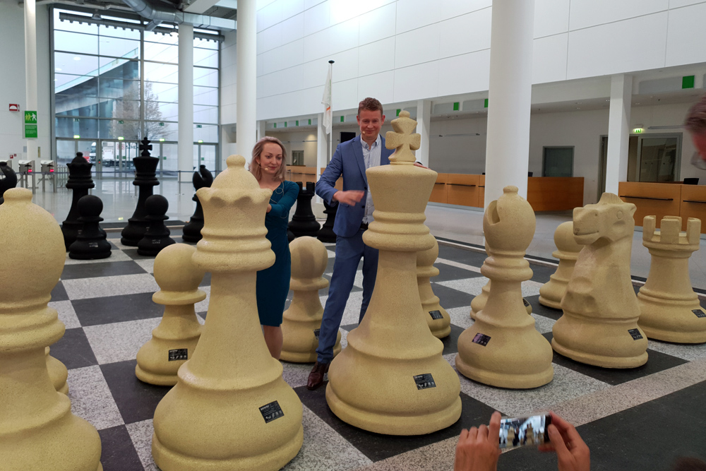 13/11/2019 – El miércoles dia 6 de noviembre tuvo lugar em Colonia (Alemania), y con motivo de la Feria del deporte, ocio y tiempo libre, se disputó una partida de exhibición entre los grandes maestros alemanes, Elisabeth Paehtz y Jan Gustafsson. Lo que hizo especial esta exhibición fue el escenario en el que tuvo lugar el juego, un ajedrez MEGA-GIGANTE, hecho con 1.200 neumáticos reciclados. | Fotos: Marcelino Sión