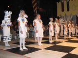 la plaza y se van colocando por orden ascendente mientras los Reyes y las Damas
