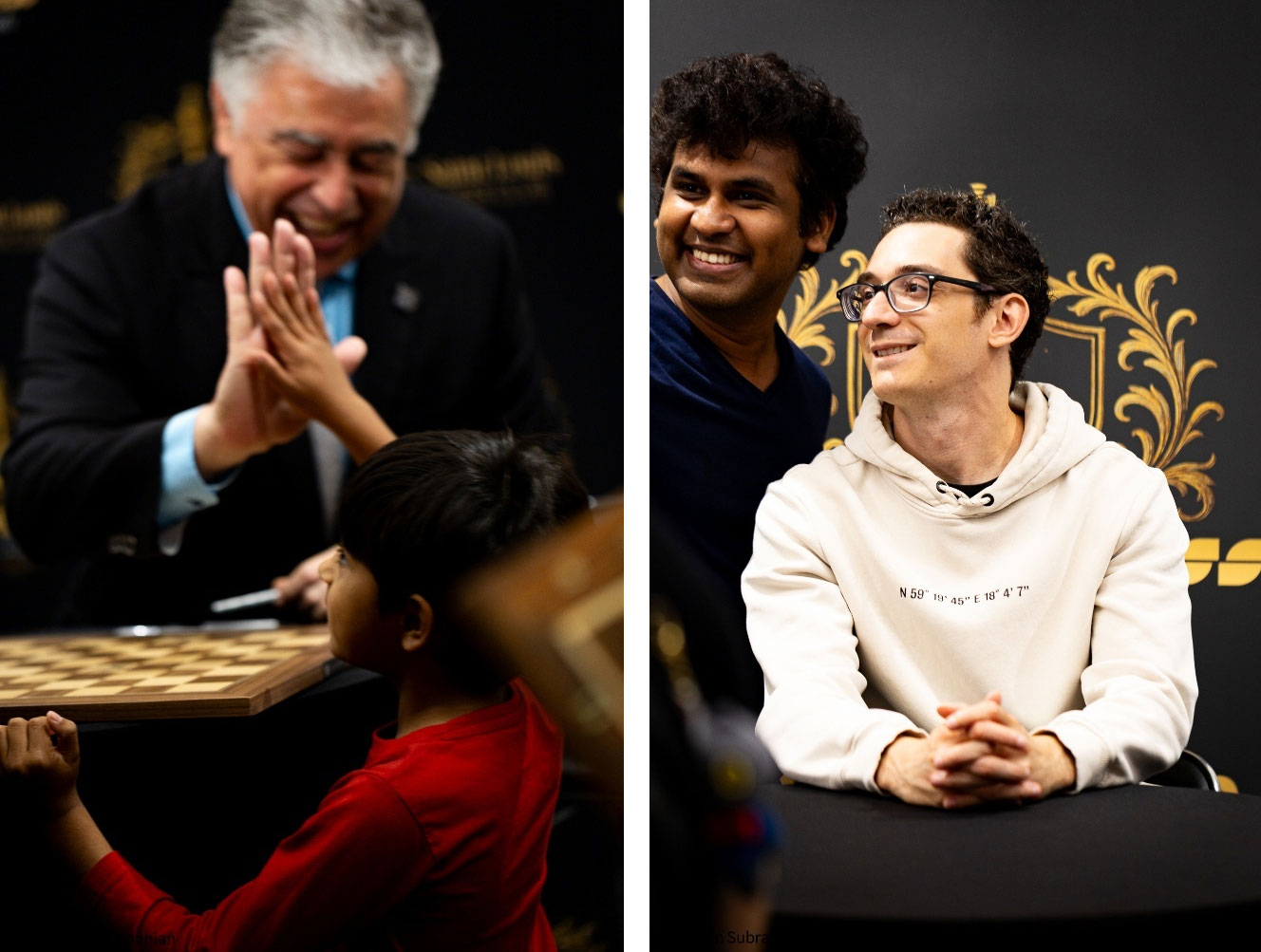 Un joven aficionado recibe un memorable «choca esos cinco» de una leyenda del ajedrez, Yasser Seirawan. Esto es lo que define el ambiente de Saint Louis. Para los aficionados, el encuentro comenzó un día antes: fotos con iconos del ajedrez como Fabiano Caruana y firmas que convierten recuerdos en tesoros familiares.