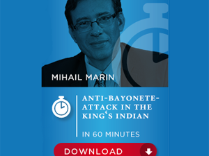 03/09/2015 – La defensa India de Rey es una de las más interesantes y temidas de las negras. Una de las formas más directas de las blancas para responder es el "Ataque a la Bayoneta". Se lanzan con 9.b4 esperando neutralizar las ambiciones de las negras rápidamente. Mikhail Marin muestra como deben afrontarlo las negras, con la teoría clave y los planes. En 60 minutos...