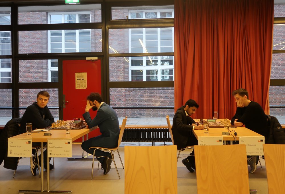En los primeros tableros: Rasmus Svane vs. Ivan Cheparinov y Nihal Sarin vs. Andrei Esipenko | Foto: André Schulz (ChessBase) / Evi Zickelbein