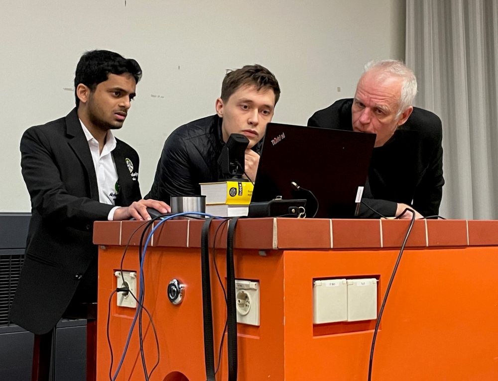Oliver Reeh con Nihal Sarin y Andrei Esipenko | Foto: André Schulz (ChessBase) / Evi Zickelbein