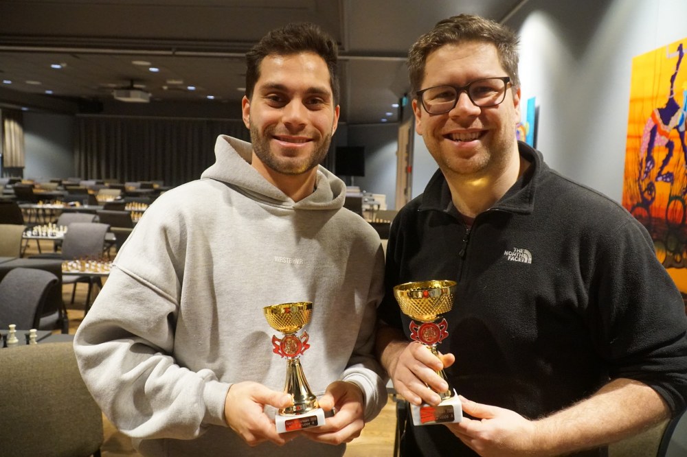 Los premios en forma de libros de ajedrez | Foto: Holger Blauhut