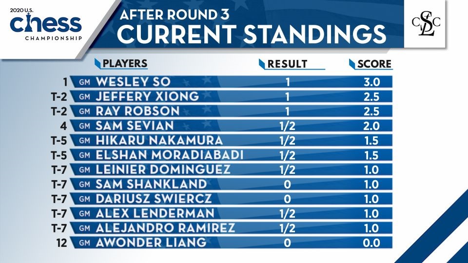Jeffery Xiong y Ray Robson van con medio punto de desventaja.