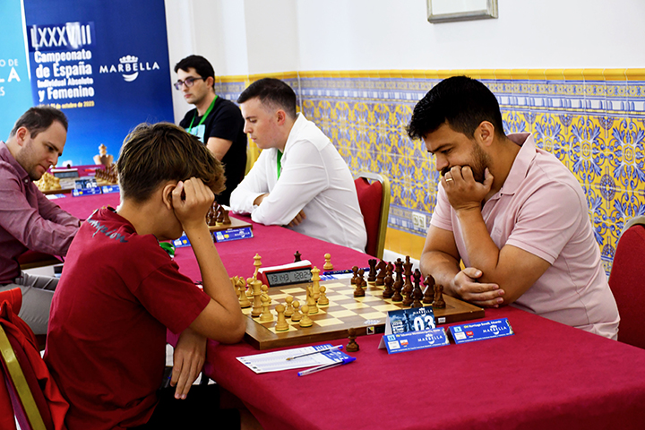 23/10/2023 – El GM Eduardo Iturrizaga se ha proclamado Campeón de España Absoluto en Marbella. Eduardo gana por tercera vez consecutiva el entorchado nacional. Le acompañaron en el podio el GM Alan Pichot y el GM Maksim Chigaev. La Campeona Femenina fue la MI Sara Khadem y el mejor jugador juvenil el FM Daniel Tabuenca Mendataurigoitia. Este LXXXVIII Campeonato de España Individual Absoluto y Femenino se ha llevado a cabo en el Hotel Senator Marbella Spa Hotel entre los días 13 al 21 de octubre de 2024. Crónica final, con fotografías por Patricia Claros. | Foto: Patricia Claros (Federación Española de Ajedrez)