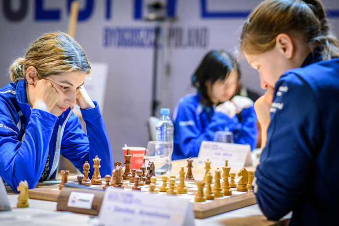 La clave fue la partida del primer tablero entre Bela Khotenashvili y Bibisara Assaubayeva. Ambas jugadoras siguieron un plan poco habitual en la India de Rey, y las blancas tenían una pequeña ventaja en la apertura. Estando bajo presión, Bibisara perdió una pieza cuando su posición ya estaba desesperada.