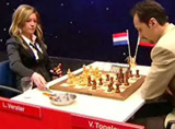 Topalov está visiblemente asombrado de que esa chica tan guapa, que no parece