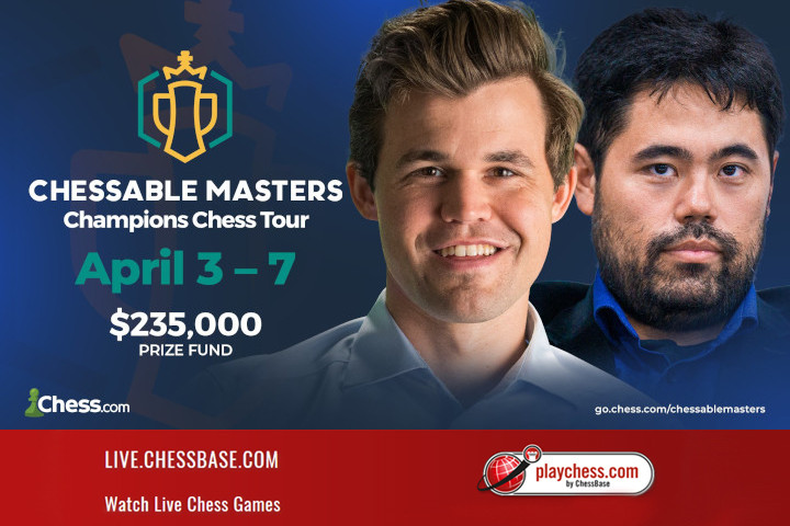 El Chessable Masters es la segunda prueba del Champions Chess Tour. Tras una fase de repesca, un total de 56 jugadores participan en la fase eliminatoria del 3 al 7 de abril.