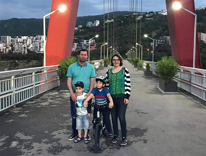 Nana con su marido lasha y sus dos hijos, Georg (5 años) y Nikoloz (7 años)