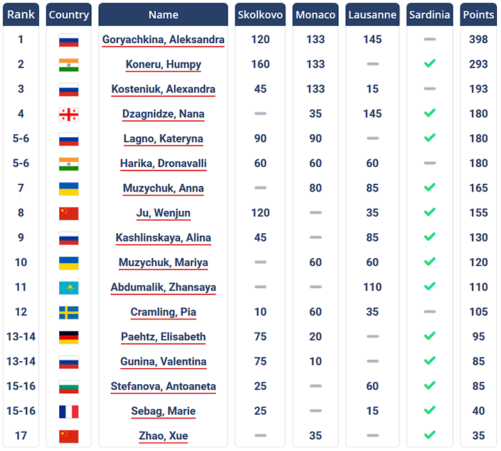 Harika y Alexandra Kosteniuk y han terminado sus respectivas series con lo cual ya no pueden sumar más puntos.