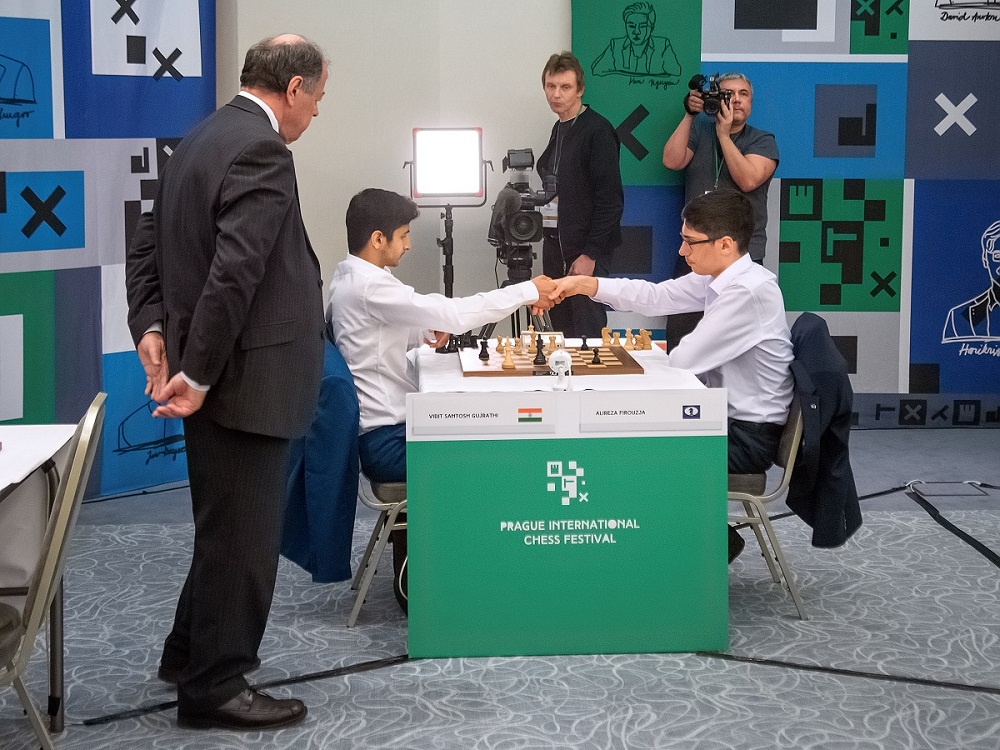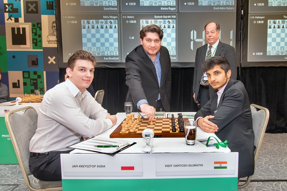 Jan-Krzysztof Duda y Vidit Santosh Gujrathi | Foto: Festival de Ajedrez de Praga 2020