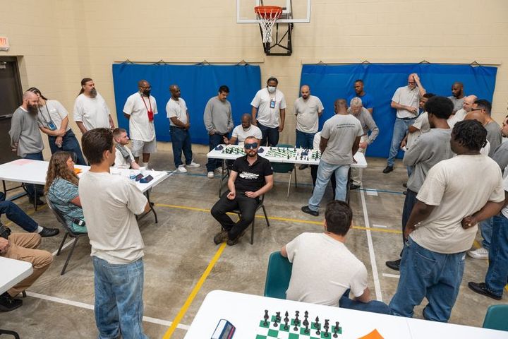 El ambiente que rodeaba el acontecimiento era electrizante. El gran maestro Timur ofreció un espectáculo en la unidad sur y en la unidad central con unas cuantas partidas de ajedrez a la ciega. Fue algo tan especial que hasta los guardias querían hacerse fotos con él y le pidieron autógrafos. Los hombres de la instalación estaban alucinados, como yo, con el talento del GM Timur para jugar partidas con los ojos vendados; en un momento dado incluso le dijo a un tipo: "¡Eh, no puedes ir ahí, te van a dar jaque!". Todo el mundo se echó a reír.