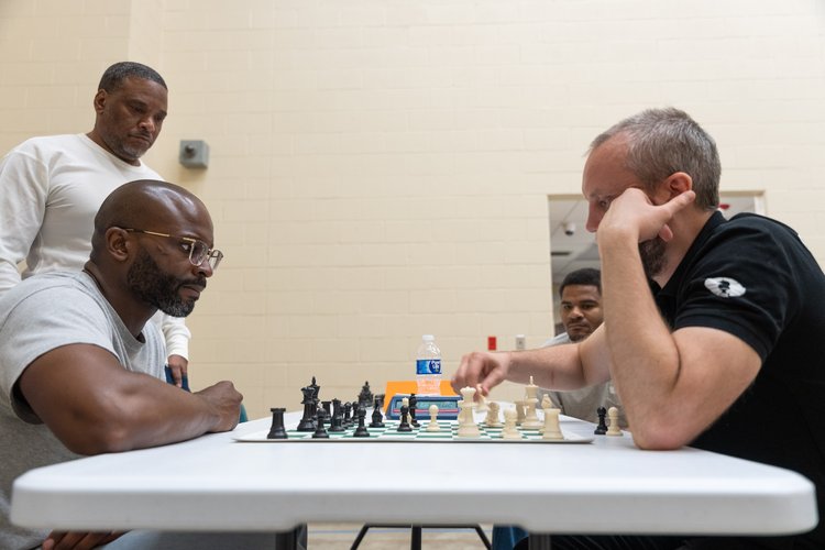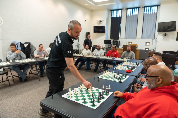 En el proyecto "The Gift of Chess" estábamos encantados de compartir esta fenomenal persona y talento con nuestros hombres durante el fin de semana del Memorial Day. Queríamos que supieran que aunque igual te hayas alejado de tu familia y de tus amigos, no te olvidan. Puedes estar lejos de ellos o incluso encerrado en la cárcel, pero pero nunca se olvidan de tí, ni al revés.