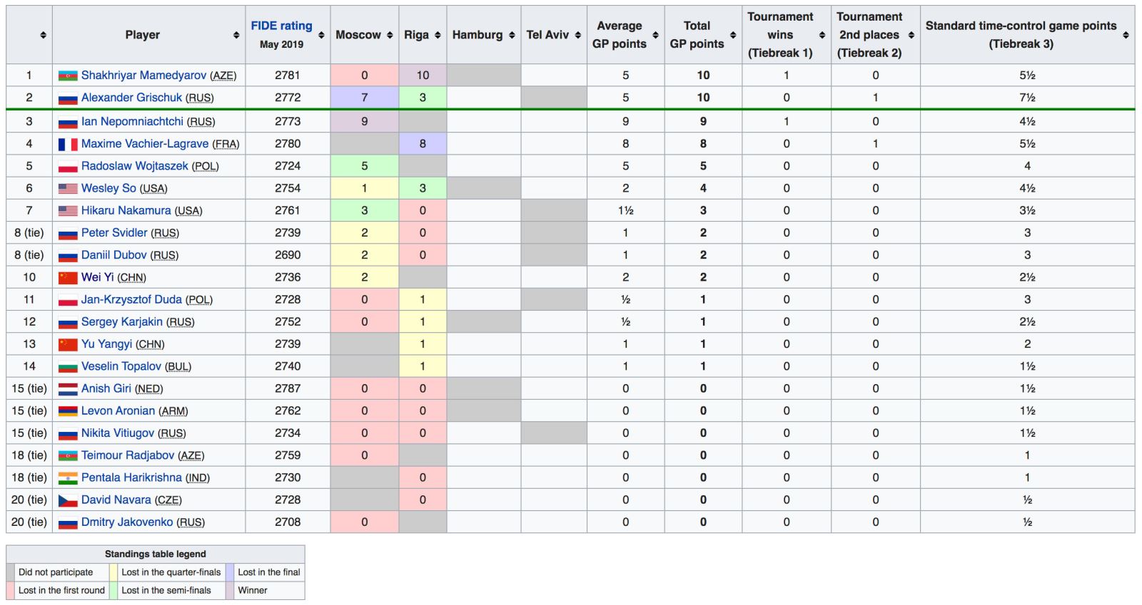 Los participantes del FIDE World Chess Grand Prix (los que participan en Hamburgo salen en negritas)