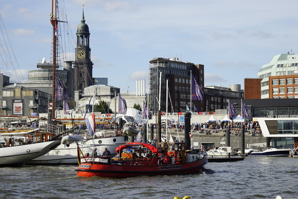 El puerto de Hamburgo y al fondo la torre de la Iglesia San Miguel ("Michel") | Foto: Nadja Wittmann (ChessBase)