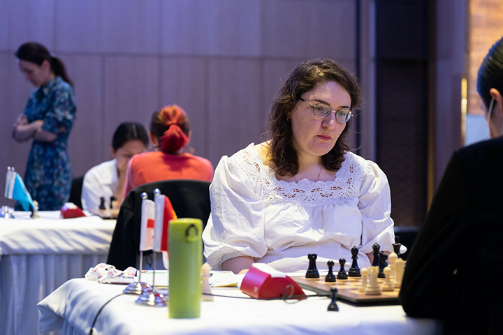 Polina Shuvalova sufrió una derrota con blancas contra Bibisara Assaubayeva | Foto: Ismael Nieto
