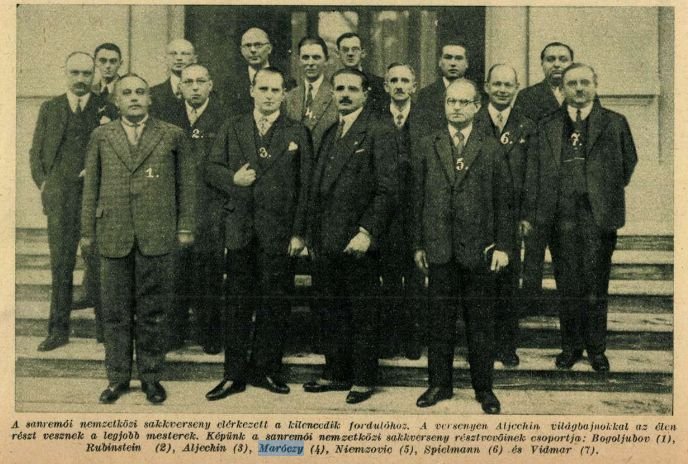 Los participantes del torneo en San Remo 1930. Monticelli está en la fila de atrás, el segundo de la izda.
