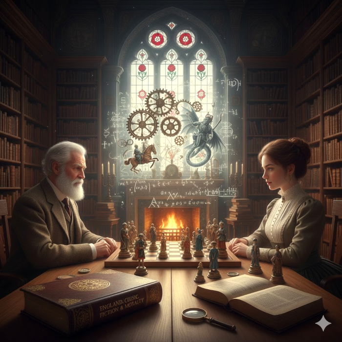 La literatura inglesa, siempre atenta a lo marginal y lo simbólico, ha cultivado también una profunda tradición ajedrecística. William Shakespeare, aunque no menciona directamente el ajedrez en sus obras, ofrece en La tempestad una célebre escena donde Miranda y Fernando juegan a lo que parece ser ajedrez, mientras declaran su amor. La escena, cargada de tensiones entre el deseo y el control, el juego y la manipulación, anticipa lecturas modernas del ajedrez como ritual de cortejo, negociación y poder simbólico.