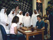 Las partidas no podían empezar tal cual porque "su majestad", el jeque había anunciado que iba a realizar la primera jugada para inaugurar el torneo. Resultó que llegó un poco tarde da menera que no hubo más remedio que esperar. ¡No jaque sin jeque!