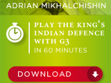 01/11/2012 – La India de Rey es un arma extrema de contraataque para las negras, así que lo mejor para las blancas es conducir una estrategia central efectiva y mantener el rey a salvo. Quizás las única y mejor forma de poner en práctica esa estrategia es la variante con el fiancheto del alfil blanco a g2. Es la variante más desagradable para los jugadores de la Defensa India de Rey, fácil de manejar y que evita que las negras pongan en funcionamiento sus planes de ataque típicos. El reputado entrenador Adrian Mikhalchishin le muestra como en 60 minutos. Más detalles...
