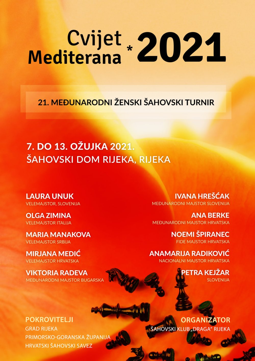 Organiza el Club de Ajedrez "Draga" de Rijeka. Se trata de un torneo presencial. Las participantes son: Laura Unuk (Eslovenia), Olga Zimina (Italia), Maria Manakova (Serbia), Mirjana Medic (Croacia), Viktoria Radeva (Bulgaria), Ana Berke (Croacia), Ivana Hrešćak (Eslovenia), Noemi Špiranec, (Croacia), Petra Kejžar, (Eslovenia) y Anamarija Radiković (Croacia).