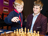 Este joven seguidor jugó 1.d4 para Magnus, pero este prefirió comenzar con 1.e4