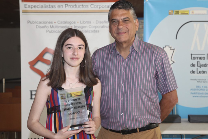 Javier Ochoa con la campeona del torneo "Jóvenes Talentos" | Foto: Advanced Chess León 2019