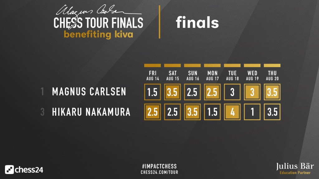 Al final de todo, unas tablas con negras tras 67 movimientos significaron que Carlsen había ganado el torneo y el tour que llevaba su nombre.