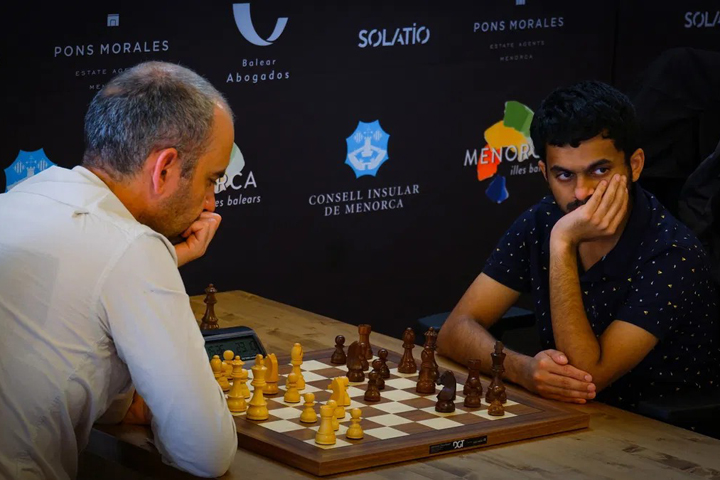 Nihal Sarin perdió con negras ante Leinier Domínguez. No obstante, el gran maestro indio ha rendido a gran nivel en Menorca: tras siete rondas, comparte el primer puesto con Ruslan Ponomariov. | Foto: Saji Mathew