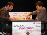 1.d4 d5 2.c4 e6 3.Cf3 Cf6 4.Cc3 c6 5.Ag5 h6 6.Ah4 [6.Axf6 es la Variante Moscú. Anand va a por más. Quizá está con ganas de terminarlo hoy mismo.]