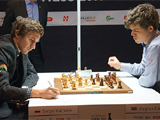 Magnus Carlsen analizando su partida contra Sergey Karjakin