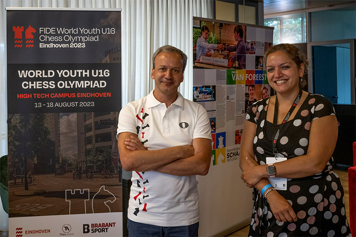 Arkady Dvorkovich (presidente de la FIDE) y WGM Bianca de Jong-Muhren, contentos con el acontecimiento que han organizado. | Foto: Frans Peeters