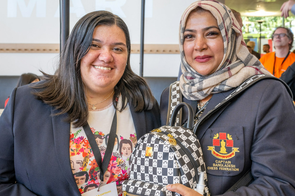 Gabriela Vargas Talavera (la capitana del equipo paraguayo, que ha participado por primera vez) con su nueva amiga, la capitana de Bangladesh | Foto: Frans Peeters
