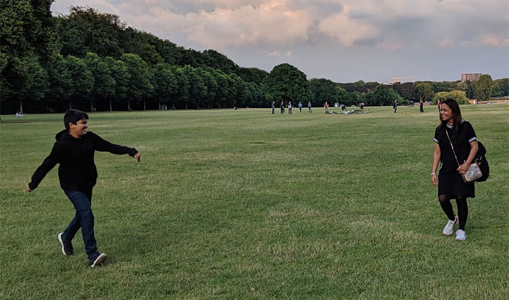 Thinking: 12-year-old Dev Shah and his mother Krupali in the Hamburg City Park