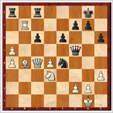 [Event "TCh-FRA Top 12 2014"] [Site "Saint-Quentin FRA"] [Date "2014.05.29"] [Round "6.2"] [White "Vaisser, Anatoly"] [Black "Postny, Evgeny"] [Result "0-1"] [ECO "B13"] [WhiteElo "2531"] [BlackElo "2641"] [Annotator "Reeh,Oliver"] [PlyCount "56"] [EventDate "2014.05.24"] [WhiteTeam "C.E. Strasbourg"] [BlackTeam "Club d'Echecs Metz Fischer"] {En la emisión de TV ChessBase de hoy, se presentarán más puntos culminantes del Campeonato de Francia por Equipos (Top 12) y muy, muy muy probabelmente estará de visita un invitado especial: el excampeón mundial Rustam Kasimdzhanov, que va a ser el entrenador de teoría de la selección olímpica alemana.} 1. d4 d5 2. Bf4 Nf6 3. e3 c5 4. Nc3 cxd4 5. exd4 a6 6. Nf3 Bg4 7. Be2 Nc6 8. Ne5 Bxe2 9. Nxe2 e6 10. O-O Be7 11. c4 dxc4 12. Nxc6 bxc6 13. Qa4 O-O 14. Qxc4 Qb6 15. Rab1 Qb5 16. Rfc1 Rfc8 17. a4 Qf5 18. b4 Nd5 19. Bd2 Bd6 20. h3 h6 21. Rb2 $6 a5 $1 {Se aprovecha de inmediato de la posición desfavorable de las torres blancas.} 22. bxa5 Ba3 {Va la calidad.} 23. Rb7 Bxc1 24. Nxc1 Nf6 25. Nd3 Ne4 26. Bb4 {El movimiento con el peón} c5 $1 {hace posible una horquilla negra en la casilla d6 y da al bando negro ventaja decisiva de material.} 27. g4 ({Tanto tras} 27. dxc5 Nd6) ({como también tras} 27. Bxc5 Nd6 {el caballo no puede ser capturado por el "vis-a-vis" de la dama blanca y la torre c8. }) 27... Qf3 28. Rxf7 (28. dxc5 Nd6 {ya lo conocemos.}) 28... Qxf7 0-1