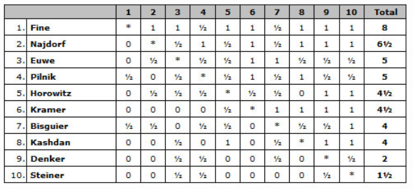 Sin embargo, aunque el mundillo del ajedrez entendía que existían otras razones para su negativa, no fue sino la aparición del número de agosto de 2004 de la revista Chess Life, donde el gran maestro Larry Evans señaló que Fine le había dicho, al respecto, que “que no quería malgastar tres meses de su vida viendo cómo los rusos se lanzaban partidas entre sí". En torneo termino ganado por el gran maestro Mihail Botvinnik (URSS).
