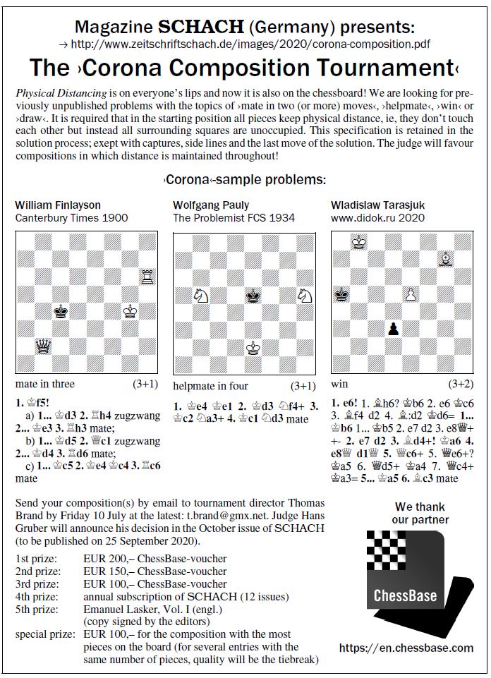 El árbitro Hans Gruber anunciará quién ha sido el ganador en la edición de octubre de 2020, de la revista alemana "SCHACH"