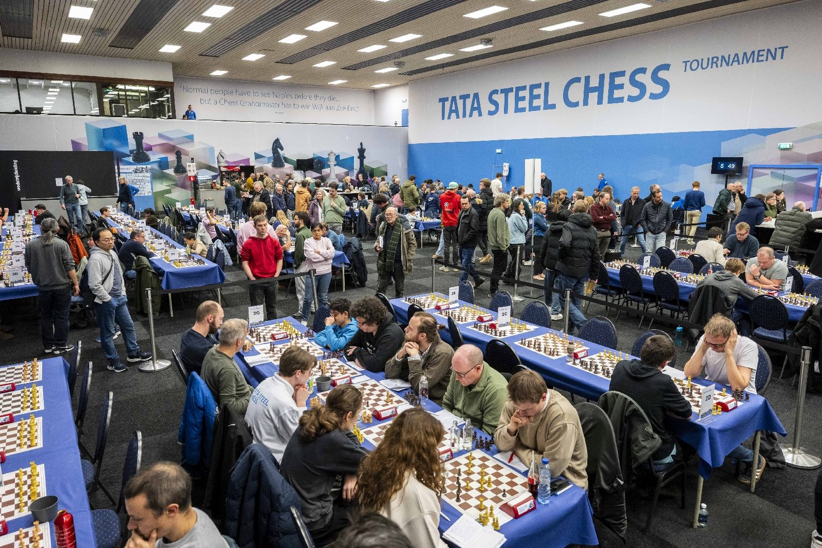 Un logro organizativo particular consiste en transformar el bastante sencillo pabellón deportivo De Moriaan en una gran sede para el ajedrez. Parte de la sala se separa con paneles y se reserva para las partidas de los jugadores de élite. En el otro extremo hay un mostrador de comida y bebida. Los vestuarios se convierten en salas de reuniones, espacios para los árbitros y los numerosos ayudantes, una sala médica, salas de exposición o salas para la prensa.