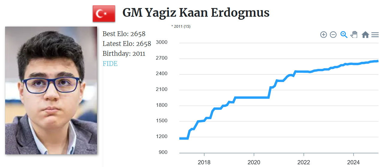 Ganar más de 45 puntos a ese nivel es increíblemente difícil, incluso para un prodigio. Sin embargo, Erdogmus está sumando puntos a un ritmo histórico, ya que acaba de superar la barrera de los 2700 casi un año antes que Wei Yi.