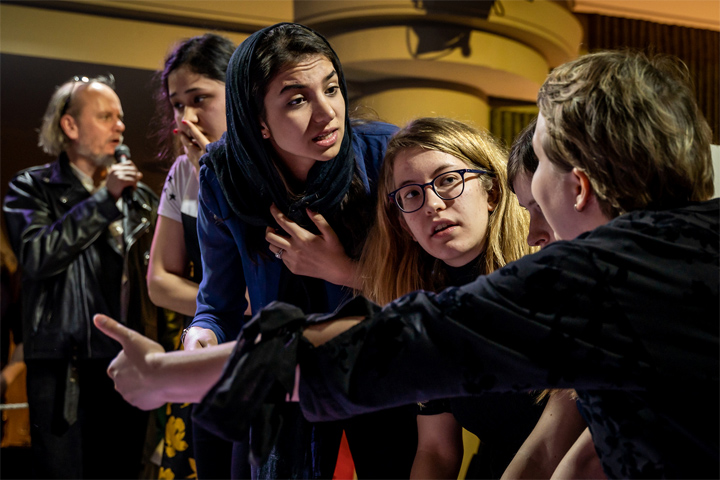 Sarasadat Khademalsharieh y Valentina Gunina discutiendo | Foto: Niki Riga