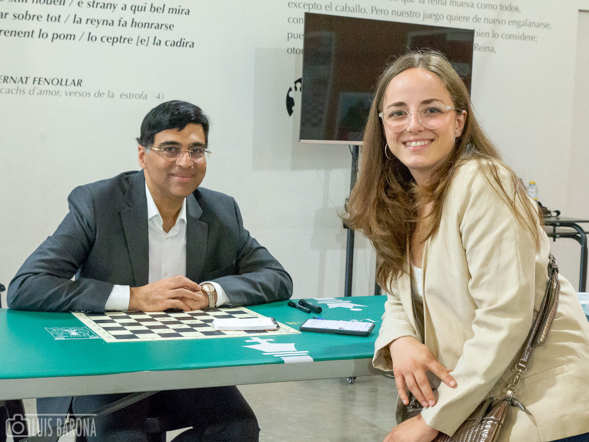 Anand recordó varias partidas suyas en las que empleó la llamada Apertura Española o Ruy López, señalando que es una apertura ideal para el aprendizaje de la estrategia y la técnica en esta fase del juego. No fue casual, nada lo es en el mundo del ajedrez, que tras atender las preguntas que le formularon los asistentes, Anand pudo ver un ejemplar precisamente del libro de Ruy López de Segura, publicado en 1561, uno de los libros más célebres de la historia del nuevo juego, conservándose un ejemplar en la Biblioteca Histórica de la Universitat de València. El libro está expuesto estos días en la Sala Duc de Calàbria. Se completa con la exposición itinerante que reproduce el contenido de la sala del complejo Petxina.