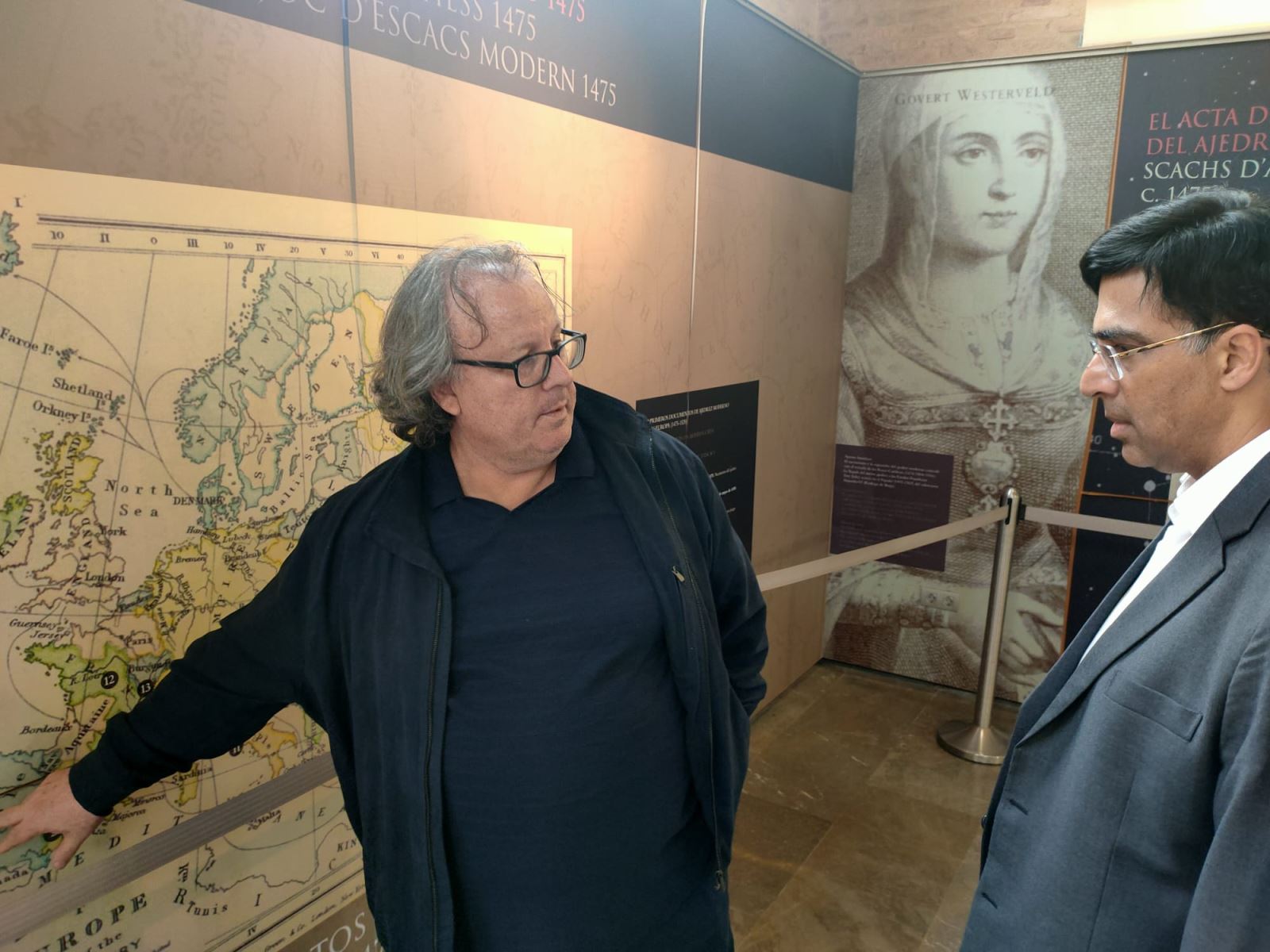 Esa misma tarde el pentacampeón mundial pudo conocer el contenido de la exposición permanente de historia del ajedrez, alojada en el Complejo Deportivo Cultural Petxina de Valencia. El investigador José A. Garzón le explicó personalmente los paneles, en los que se explica el origen valenciano del ajedrez moderno y la expansión europea de las nuevas reglas, con reproducción de los documentos acreditativos más importantes.