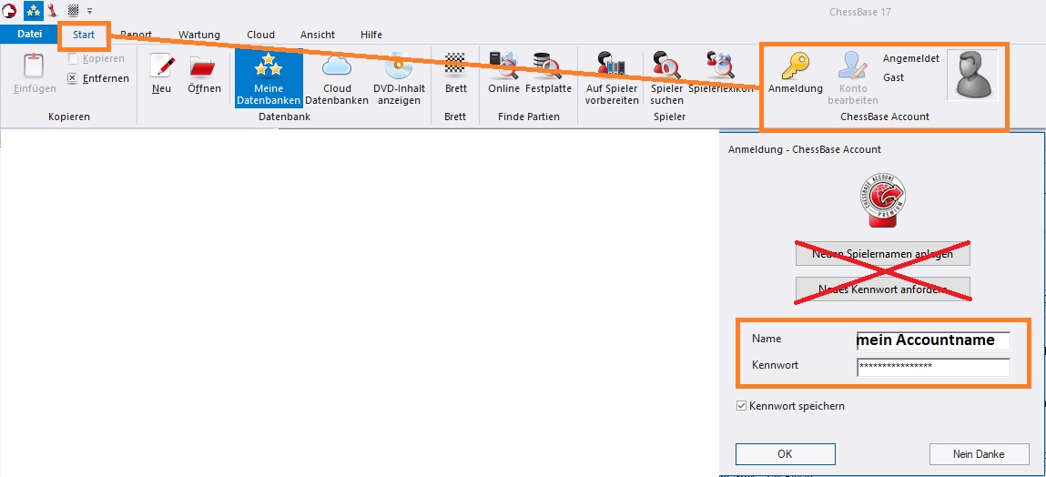Antwort: Sie müssen sich mit Ihrem ChessBase-Account anmelden, bevor Sie das Programm aktivieren können.